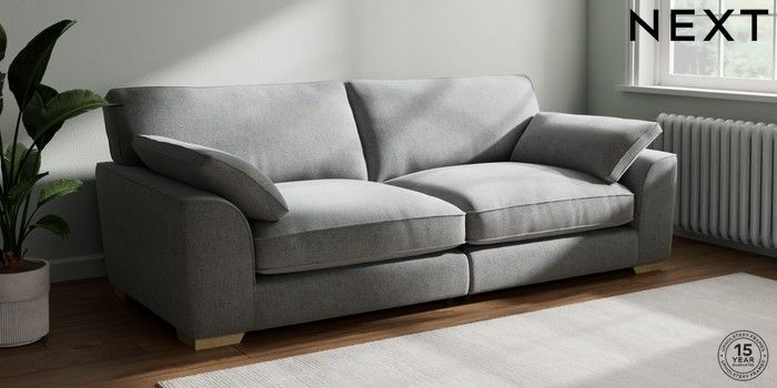 7.3.1 Buy Stamford Grand Relaxed Sit 4 Seater Sofa Chunky Marl Mid Grey Large Square Angle - Light from the Next UK online shop