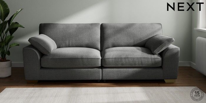 7.2.10 Buy Stamford Grand Relaxed Sit 4 Seater Sofa Chunky Texture Dark Grey Large Square Angle - Brushed Brass from the Next UK online shop Click here to use our accessible website