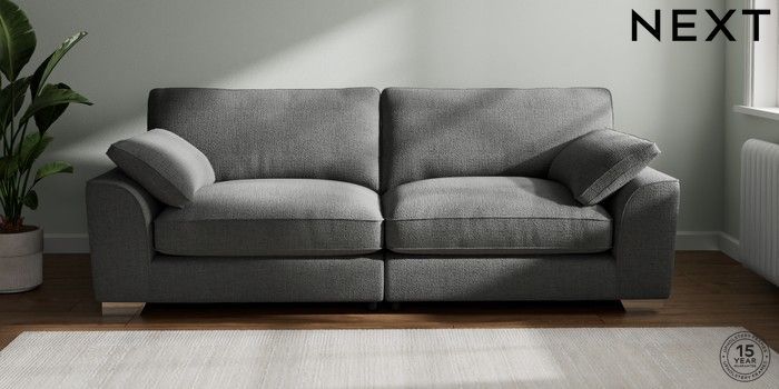 7.3.1 Buy Stamford Grand Relaxed Sit 4 Seater Sofa Chunky Texture Dark Grey Large Square Angle - Chrome Metal from the Next UK online shop Click here to use our accessible website