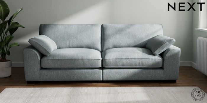 7.2.10 Buy Stamford Grand Relaxed Sit 4 Seater Sofa Chunky Weave Mid Blue Large Square Angle - Dark from the Next UK online shop Click here to use our accessible website