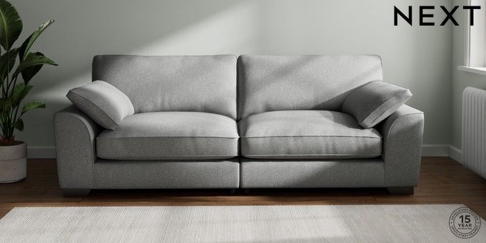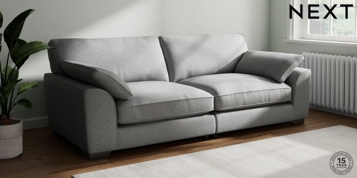 7.3.1 Buy Stamford Grand Relaxed Sit 4 Seater Sofa Chunky Weave Mid Grey Large Square Angle - Gunmetal from the Next UK online shop Click here to use our accessible website