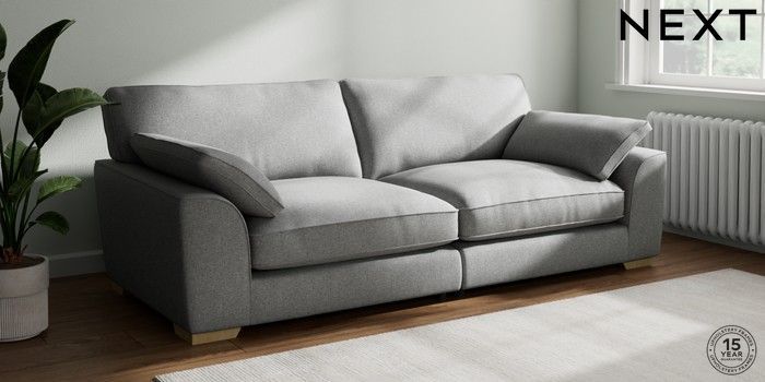 7.3.1 Buy Stamford Grand Relaxed Sit 4 Seater Sofa Chunky Weave Mid Grey Large Square Angle - Light from the Next UK online shop