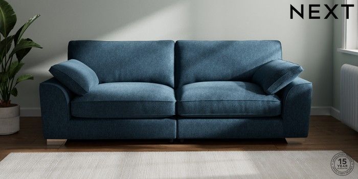 7.3.1 Buy Stamford Grand Relaxed Sit 4 Seater Sofa Cotswold Chenille Dark Blue Large Square Angle - Chrome Metal from the Next UK online shop Click here to use our accessible website