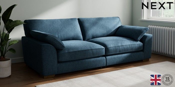 6.12.1 Buy Stamford Grand Relaxed Sit 4 Seater Sofa Cotswold Chenille Dark Blue Large Square Angle - Mid from the Next UK online shop Click here to use our accessible website