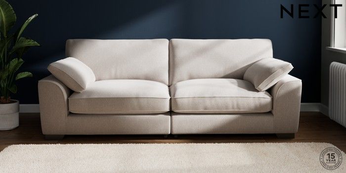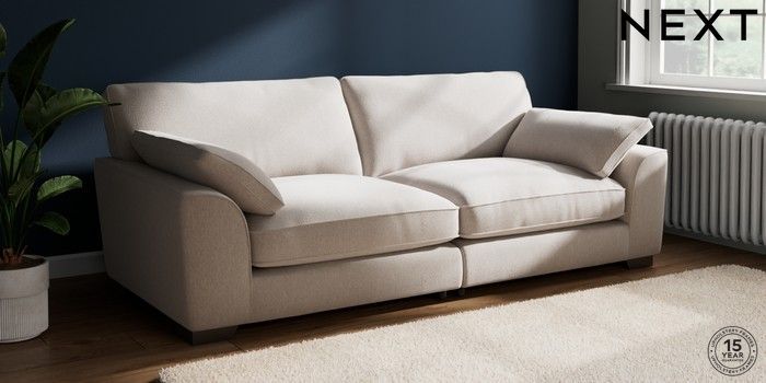 7.3.1 Buy Stamford Grand Relaxed Sit 4 Seater Sofa Cotswold Chenille Oyster Large Square Angle - Gunmetal from the Next UK online shop Click here to use our accessible website