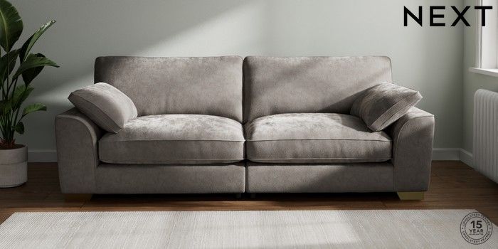 7.3.1 Buy Stamford Grand Relaxed Sit 4 Seater Sofa Distressed Velour French Grey Large Square Angle - Brushed Brass from the Next UK online shop Click here to use our accessible website