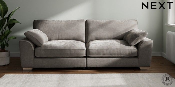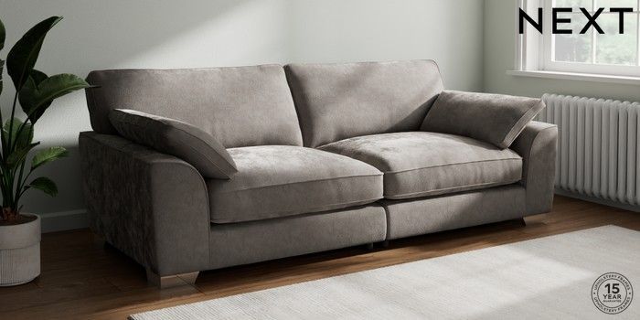 7.3.1 Buy Stamford Grand Relaxed Sit 4 Seater Sofa Distressed Velour French Grey Large Square Angle - Chrome Metal from the Next UK online shop Click here to use our accessible website