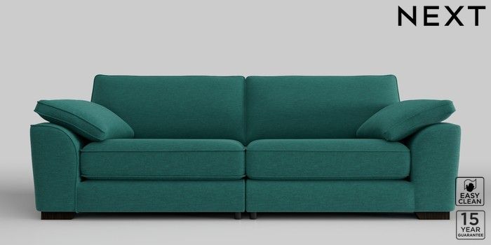 6.11.8 Buy Stamford Grand Relaxed Sit 4 Seater Sofa Fine Chenille Easy Clean Dark Juniper Green Large Square Angle - Dark from the Next UK online shop Click here to use our accessible website