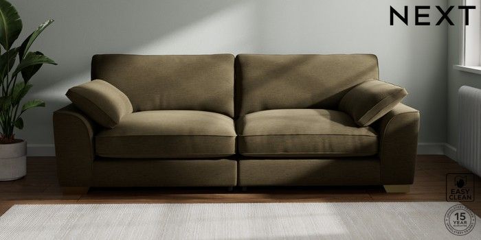 7.3.1 Buy Stamford Grand Relaxed Sit 4 Seater Sofa Fine Chenille Easy Clean Dark Moss Green Large Square Angle - Brushed Brass from the Next UK online shop Click here to use our accessible website