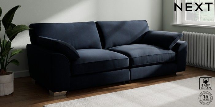 7.3.1 Buy Stamford Grand Relaxed Sit 4 Seater Sofa Fine Chenille Easy Clean Dark Navy Blue Large Square Angle - Chrome Metal from the Next UK online shop Click here to use our accessible website