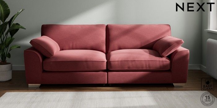 7.3.1 Buy Stamford Grand Relaxed Sit 4 Seater Sofa Fine Chenille Easy Clean Mid Pink Large Square Angle - Chrome Metal from the Next UK online shop Click here to use our accessible website