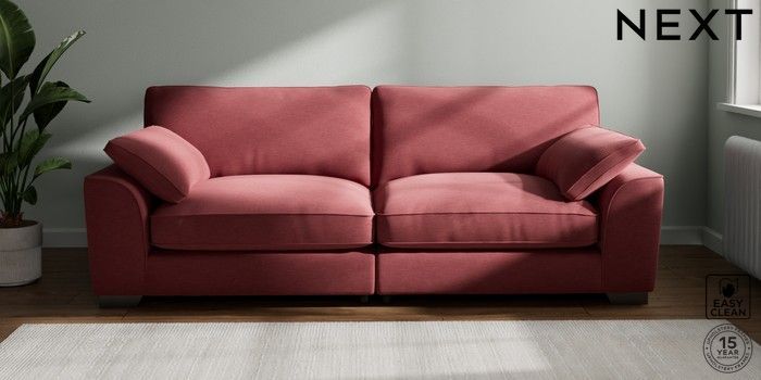 7.3.1 Buy Stamford Grand Relaxed Sit 4 Seater Sofa Fine Chenille Easy Clean Mid Pink Large Square Angle - Gunmetal from the Next UK online shop Click here to use our accessible website