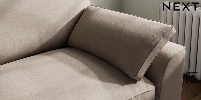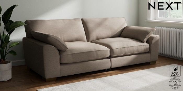 7.3.1 Buy Stamford Grand Relaxed Sit 4 Seater Sofa Fine Chenille Easy Clean Mid Taupe Brown Large Square Angle - Brushed Brass from the Next UK online shop Click here to use our accessible website