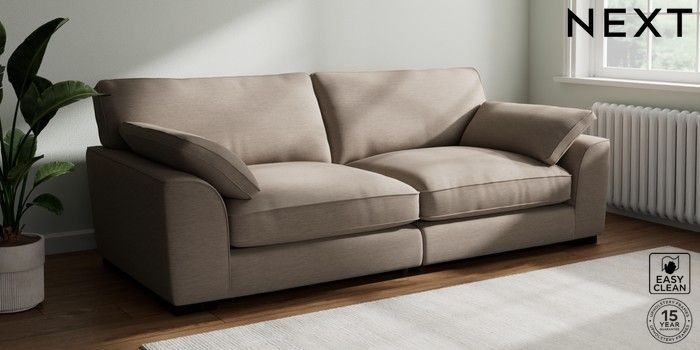 7.3.1 Buy Stamford Grand Relaxed Sit 4 Seater Sofa Fine Chenille Easy Clean Mid Taupe Brown Large Square Angle - Dark from the Next UK online shop Click here to use our accessible website
