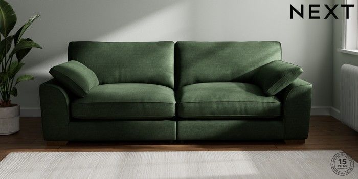 7.2.10 Buy Stamford Grand Relaxed Sit 4 Seater Sofa Luxe Chenille Dark Green Large Square Angle - Mid from the Next UK online shop Click here to use our accessible website
