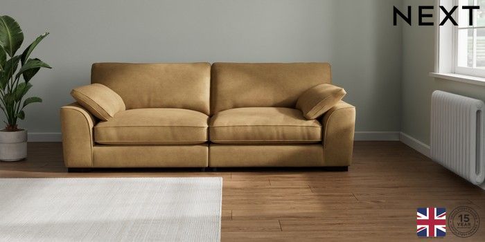 7.0.3 Buy Stamford Grand Relaxed Sit 4 Seater Sofa Luxe Chenille Honey Yellow Large Square Angle - Dark from the Next UK online shop Click here to use our accessible website