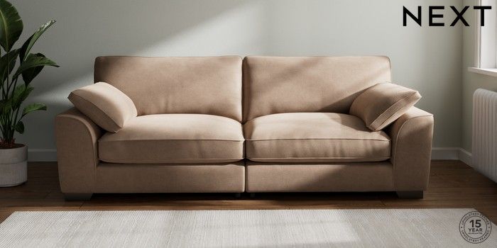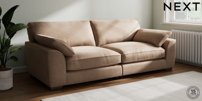 7.3.1 Buy Stamford Grand Relaxed Sit 4 Seater Sofa Luxe Chenille Mid Natural Large Square Angle - Gunmetal from the Next UK online shop Click here to use our accessible website