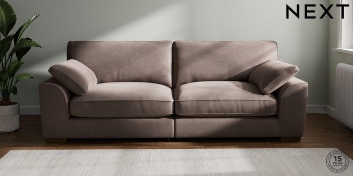 7.2.10 Buy Stamford Grand Relaxed Sit 4 Seater Sofa Luxe Chenille Mink Brown Large Square Angle - Mid from the Next UK online shop Click here to use our accessible website
