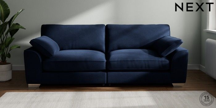 7.3.1 Buy Stamford Grand Relaxed Sit 4 Seater Sofa Luxe Chenille Navy Blue Large Square Angle - Chrome Metal from the Next UK online shop Click here to use our accessible website