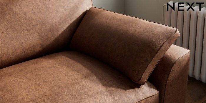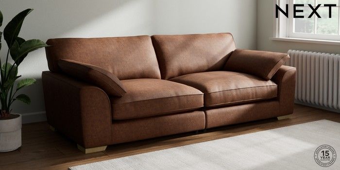 7.3.1 Buy Stamford Grand Relaxed Sit 4 Seater Sofa Monza Faux Leather Easy Clean Chestnut Brown Large Square Angle - Light from the Next UK online shop Click here to use our accessible website