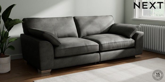 7.3.1 Buy Stamford Grand Relaxed Sit 4 Seater Sofa Monza Faux Leather Easy Clean Dark Grey Large Square Angle - Chrome Metal from the Next UK online shop Click here to use our accessible website