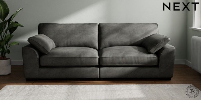 7.2.10 Buy Stamford Grand Relaxed Sit 4 Seater Sofa Monza Faux Leather Easy Clean Dark Grey Large Square Angle - Dark from the Next UK online shop Click here to use our accessible website