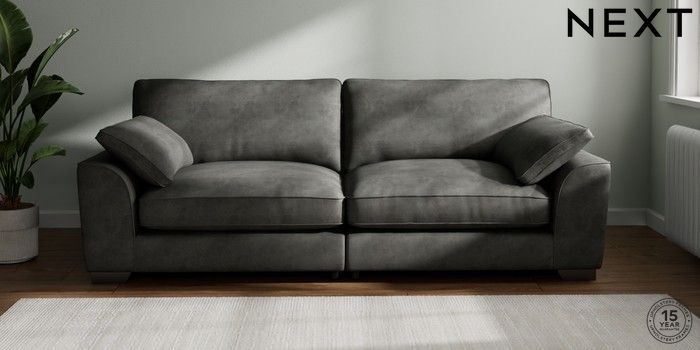 7.2.10 Buy Stamford Grand Relaxed Sit 4 Seater Sofa Monza Faux Leather Easy Clean Dark Grey Large Square Angle - Gunmetal from the Next UK online shop Click here to use our accessible website