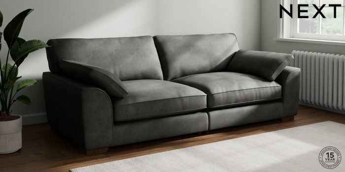 7.3.1 Buy Stamford Grand Relaxed Sit 4 Seater Sofa Monza Faux Leather Easy Clean Dark Grey Large Square Angle - Mid from the Next UK online shop Click here to use our accessible website