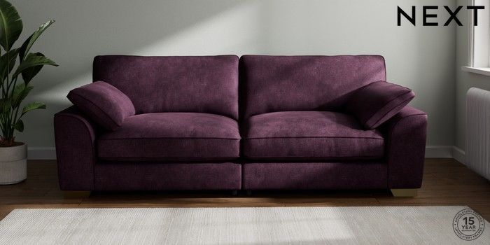 7.3.1 Buy Stamford Grand Relaxed Sit 4 Seater Sofa Plush Chenille Dark Plum Purple Large Square Angle - Brushed Brass from the Next UK online shop Click here to use our accessible website