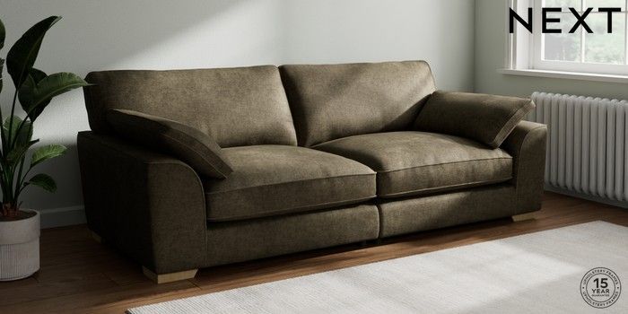7.3.1 Buy Stamford Grand Relaxed Sit 4 Seater Sofa Plush Chenille Moss Green Large Square Angle - Light from the Next UK online shop