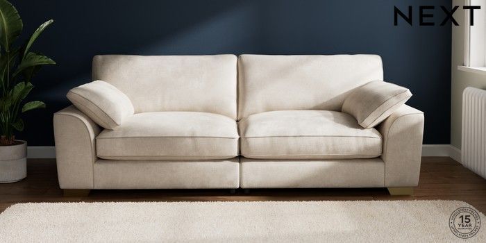7.3.1 Buy Stamford Grand Relaxed Sit 4 Seater Sofa Plush Chenille Oyster Large Square Angle - Brushed Brass from the Next UK online shop Click here to use our accessible website