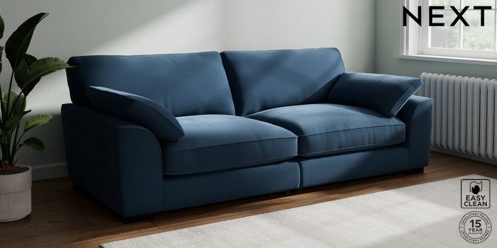 7.3.1 Buy Stamford Grand Relaxed Sit 4 Seater Sofa Plush Velvet Easy Clean Airforce Blue Large Square Angle - Dark from the Next UK online shop Click here to use our accessible website