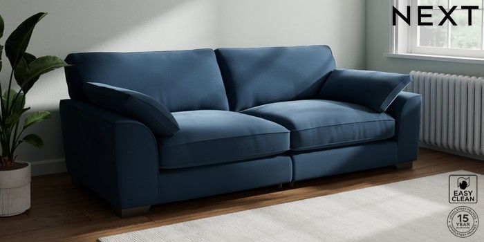 7.3.1 Buy Stamford Grand Relaxed Sit 4 Seater Sofa Plush Velvet Easy Clean Airforce Blue Large Square Angle - Gunmetal from the Next UK online shop Click here to use our accessible website