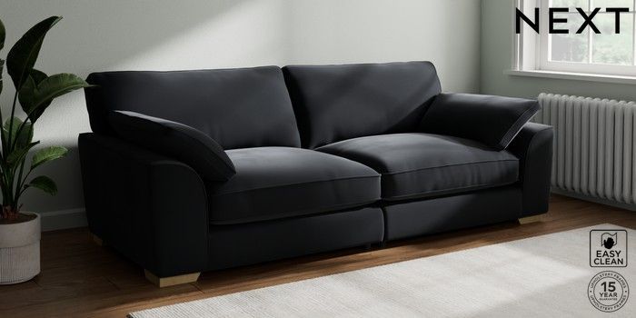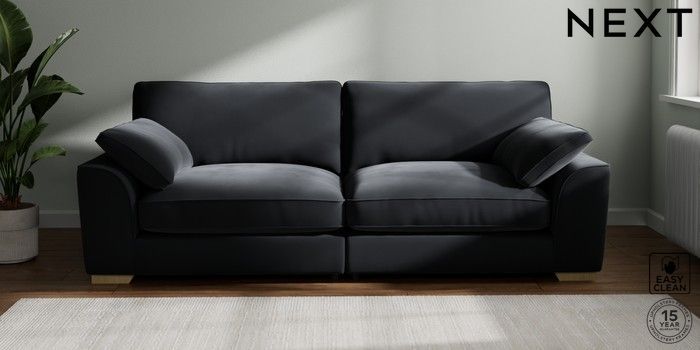 7.3.1 Buy Stamford Grand Relaxed Sit 4 Seater Sofa Plush Velvet Easy Clean Charcoal Grey Large Square Angle - Light from the Next UK online shop Click here to use our accessible website