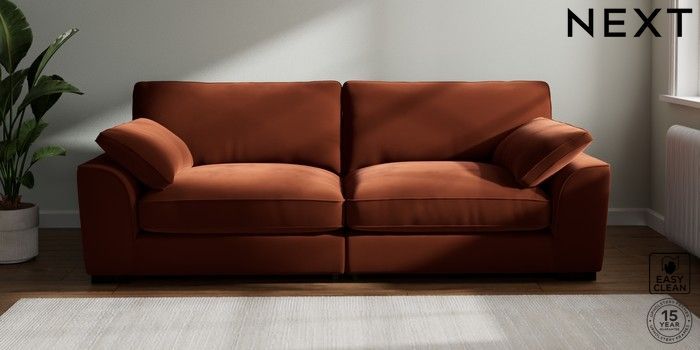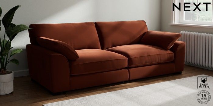 7.3.1 Buy Stamford Grand Relaxed Sit 4 Seater Sofa Plush Velvet Easy Clean Ginger Orange Large Square Angle - Dark from the Next UK online shop Click here to use our accessible website
