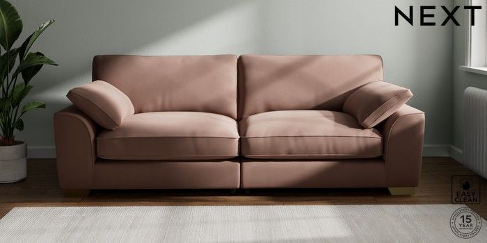 7.3.1 Buy Stamford Grand Relaxed Sit 4 Seater Sofa Plush Velvet Easy Clean Mid Natural Large Square Angle - Brushed Brass from the Next UK online shop Click here to use our accessible website