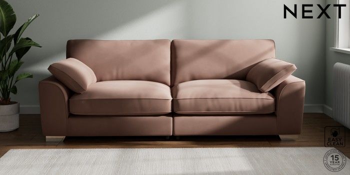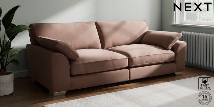 7.3.1 Buy Stamford Grand Relaxed Sit 4 Seater Sofa Plush Velvet Easy Clean Mid Natural Large Square Angle - Chrome Metal from the Next UK online shop Click here to use our accessible website