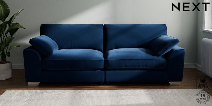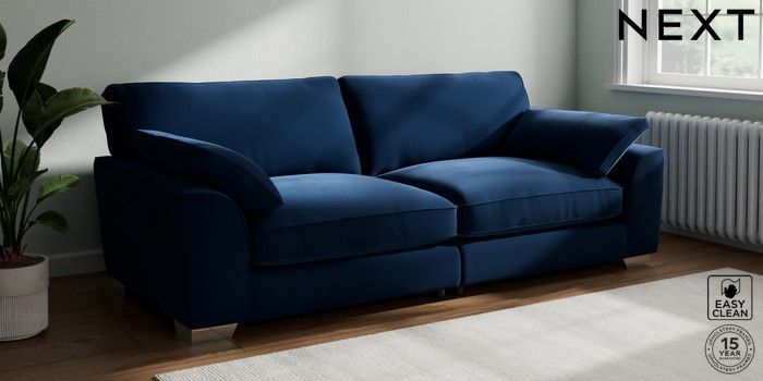 7.3.1 Buy Stamford Grand Relaxed Sit 4 Seater Sofa Plush Velvet Easy Clean Navy Blue Large Square Angle - Chrome Metal from the Next UK online shop Click here to use our accessible website