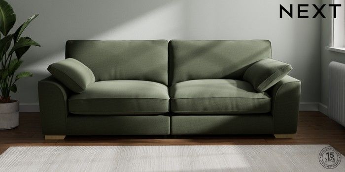 7.3.1 Buy Stamford Grand Relaxed Sit 4 Seater Sofa Relaxed Linen Look Dark Green Large Square Angle - Light from the Next UK online shop Click here to use our accessible website