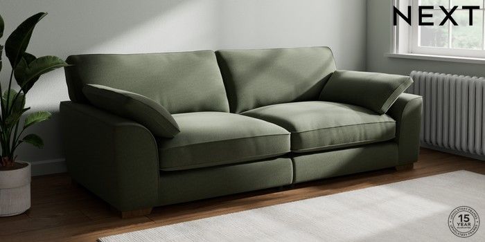 7.3.1 Buy Stamford Grand Relaxed Sit 4 Seater Sofa Relaxed Linen Look Dark Green Large Square Angle - Mid from the Next UK online shop Click here to use our accessible website