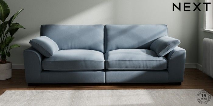 7.3.1 Buy Stamford Grand Relaxed Sit 4 Seater Sofa Relaxed Linen Look Mid Blue Large Square Angle - Dark from the Next UK online shop Click here to use our accessible website