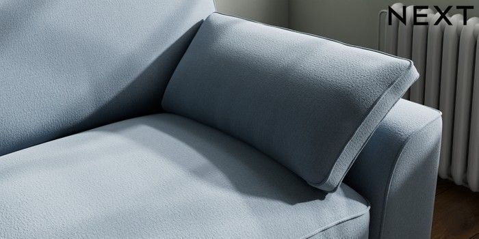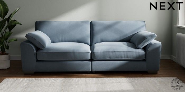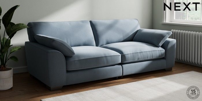 7.3.1 Buy Stamford Grand Relaxed Sit 4 Seater Sofa Relaxed Linen Look Mid Blue Large Square Angle - Gunmetal from the Next UK online shop Click here to use our accessible website