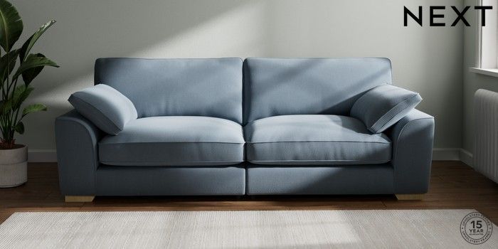 7.2.10 Buy Stamford Grand Relaxed Sit 4 Seater Sofa Relaxed Linen Look Mid Blue Large Square Angle - Light from the Next UK online shop Click here to use our accessible website