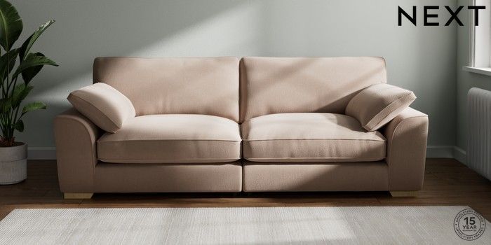 7.3.1 Buy Stamford Grand Relaxed Sit 4 Seater Sofa Relaxed Linen Look Mid Natural Large Square Angle - Light from the Next UK online shop Click here to use our accessible website