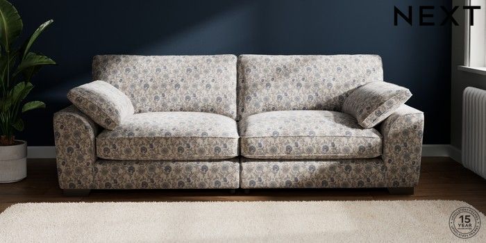 7.2.10 Buy Stamford Grand Relaxed Sit 4 Seater Sofa Relaxed Linen Look Print Woodblock Floral Blue Large Square Angle - Gunmetal from the Next UK online shop Click here to use our accessible website