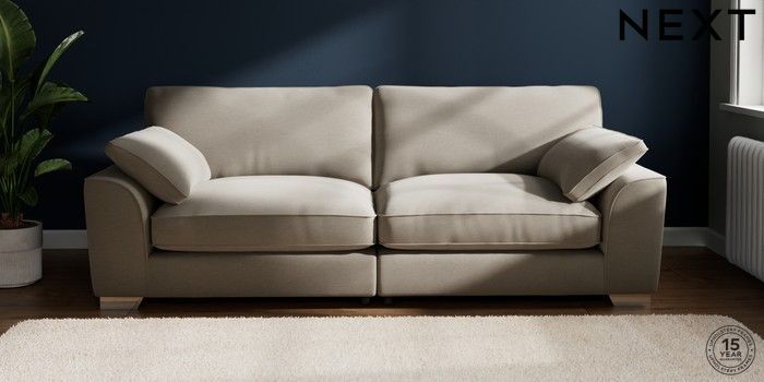 7.3.1 Buy Stamford Grand Relaxed Sit 4 Seater Sofa Ripple Chenille Light Natural Large Square Angle - Chrome Metal from the Next UK online shop Click here to use our accessible website