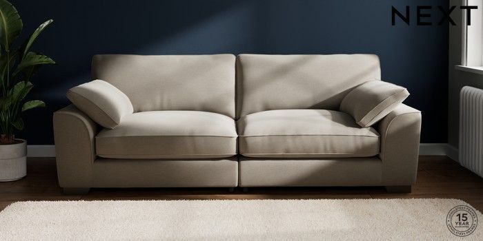 7.3.1 Buy Stamford Grand Relaxed Sit 4 Seater Sofa Ripple Chenille Light Natural Large Square Angle - Gunmetal from the Next UK online shop Click here to use our accessible website