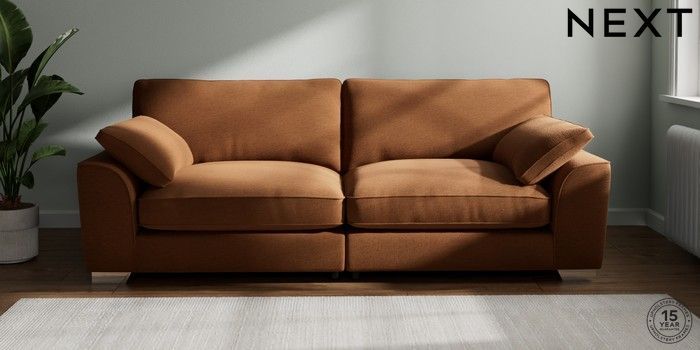 7.2.10 Buy Stamford Grand Relaxed Sit 4 Seater Sofa Ripple Chenille Mid Rust Brown Large Square Angle - Chrome Metal from the Next UK online shop Click here to use our accessible website
