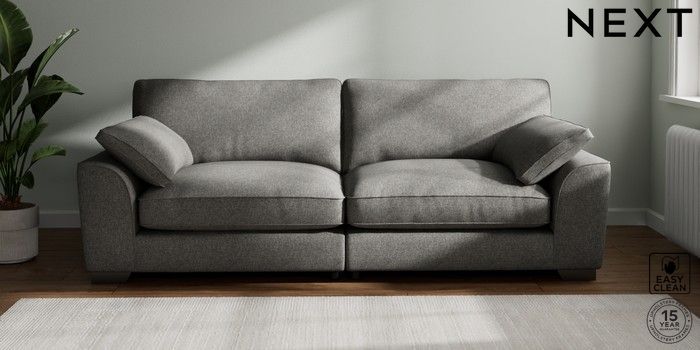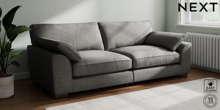 7.3.1 Buy Stamford Grand Relaxed Sit 4 Seater Sofa Tweedy Blend Easy Clean Dark Grey Large Square Angle - Gunmetal from the Next UK online shop Click here to use our accessible website