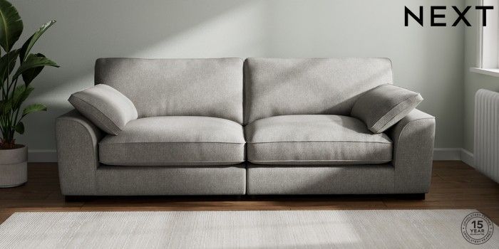 7.3.1 Buy Stamford Grand Relaxed Sit 4 Seater Sofa Tweedy Chenille Mid Grey Large Square Angle - Dark from the Next UK online shop Click here to use our accessible website